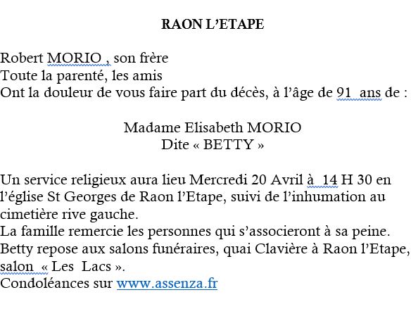 Décédée à Saint Dié (88100, France) le dimanche 17 avril 2022 à l'âge de 91 ans