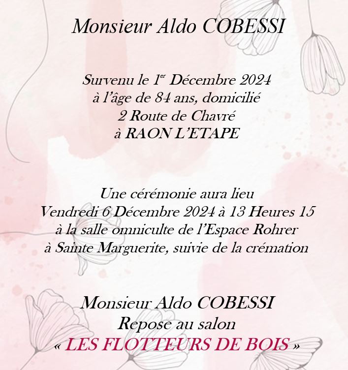 Décédé à Raon-l'Étape (88110, France) le dimanche 1 décembre 2024 à l'âge de 84 ans