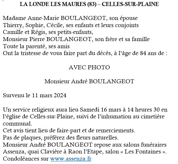 Décédé à La Londe-les-Maures (83250, France) le lundi 11 mars 2024 à l'âge de 84 ans