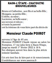 Décédé à Saint Dié (88100, France) le vendredi 28 janvier 2022 à l'âge de 85 ans