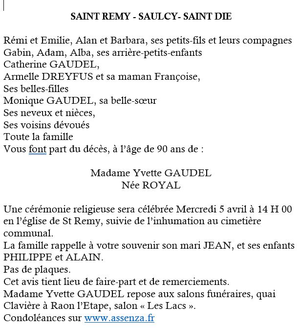 Décédée à Saint Dié (88100, France) le samedi 1 avril 2023 à l'âge de 90 ans