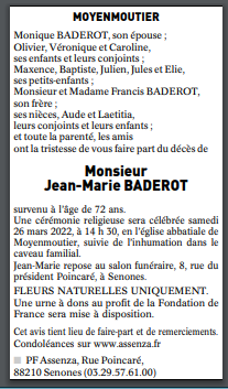 Décédé à Nancy (54000, France) le mercredi 23 mars 2022 à l'âge de 72 ans