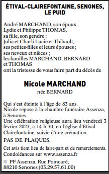 Décédée à Moyenmoutier (88420, France) le mardi 31 janvier 2023 à l'âge de 83 ans