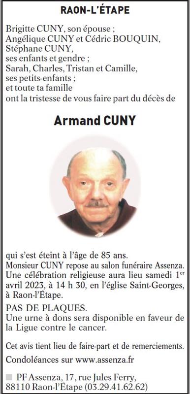 Décédé à Raon-l'Étape (88110, France) le mardi 28 mars 2023 à l'âge de 85 ans