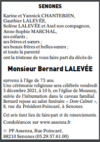 Décédé à Senones (88210, France) le mardi 30 novembre 2021 à l'âge de 73 ans